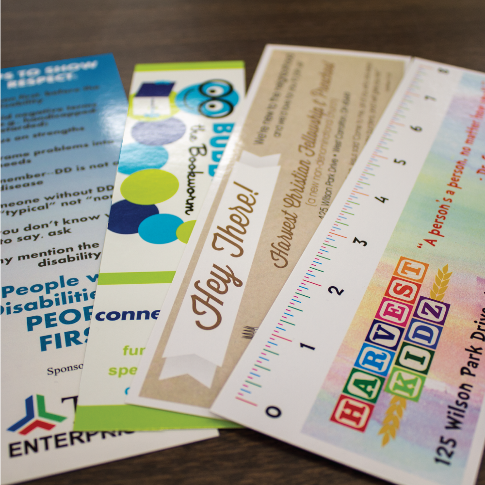 You can order your bookmarks in almost any paper stock. We recommend 80# matte, 100# gloss, or UV coating to really make your bookmarks stand out.