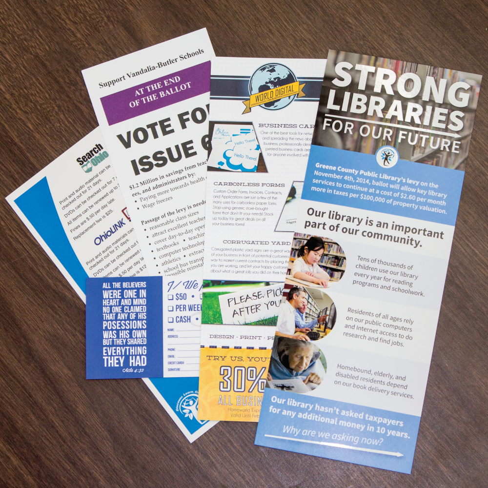 Standard cards are single or double sided thick paper that you can either hand out or put in with a letter to send out for donations or potential clients.